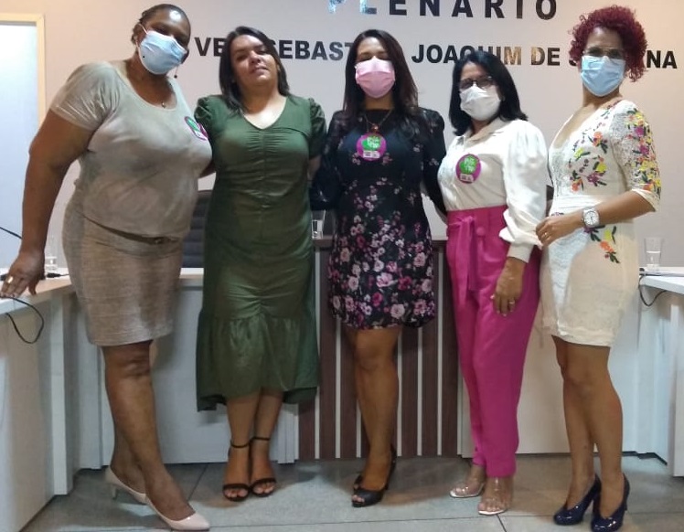 Ivete Leão, vereadora Keilla, vereadora Sebastiana, vereadora Vera Leal e Eliane Suzart.